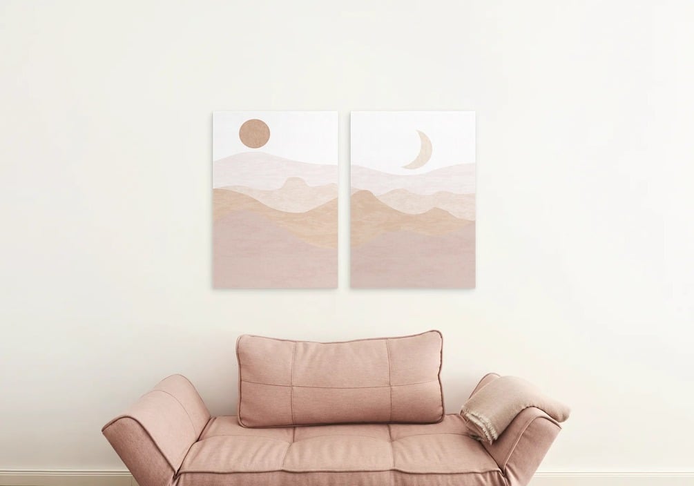 Abstract Landscape Print Set Boho Nursery Decor Sun Moon Set of 2 Wall Art Prints